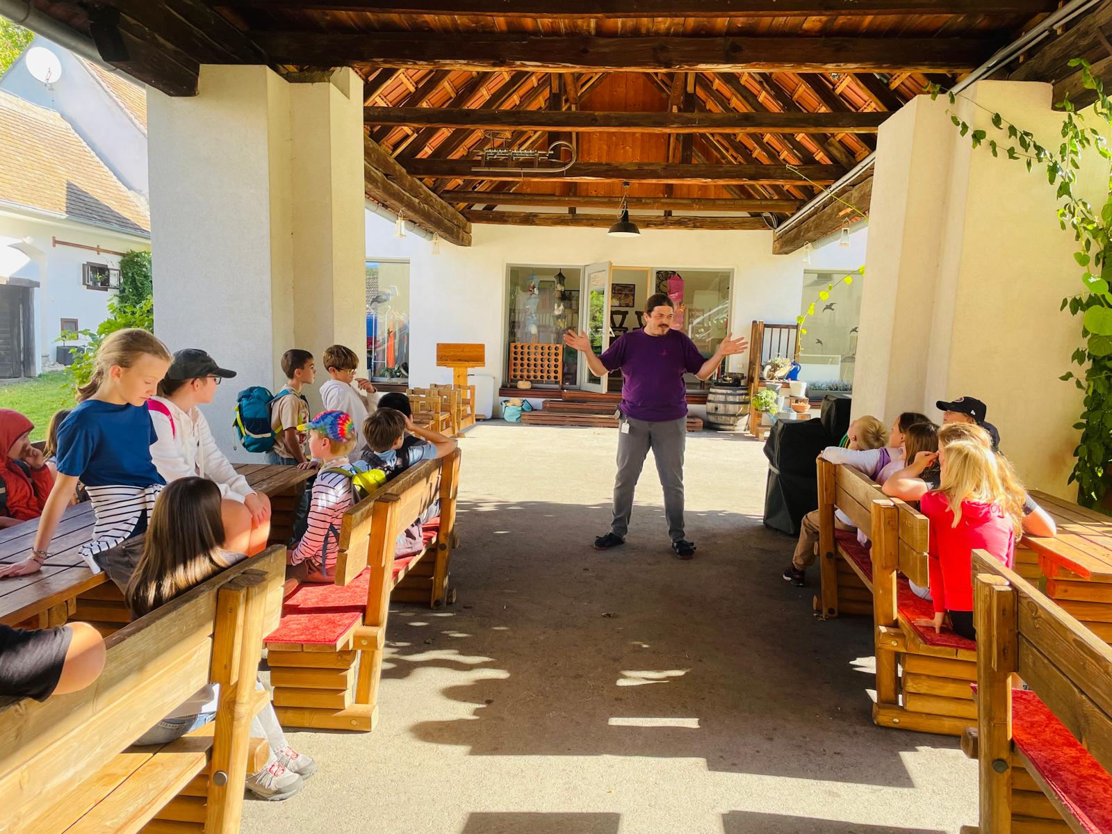 Am Freitag, dem 19. September 2025, besuchte die 2B bei traumhaftem Spätsommerwetter den Tierpark in Ernstbrunn. Der Rundgang startete in den großen begehbaren Gehegen der Sikahirsche, die sehr zutraulich sind, sich ebenso gerne füttern und aus nächster Nähe beobachten lassen. Die kurze anfängliche Skepsis war schnell verflogen und die Schüler:innen begannen, ihre Portfolioaufgaben zu bearbeiten. Nach einer kurzen Mittagsrast erwartete uns schon die Führerin für das Highlight dieser Exkursion, einer Führung zu den Wolfsgehegen und dem Besuch des WSC (Wolf Science Center).