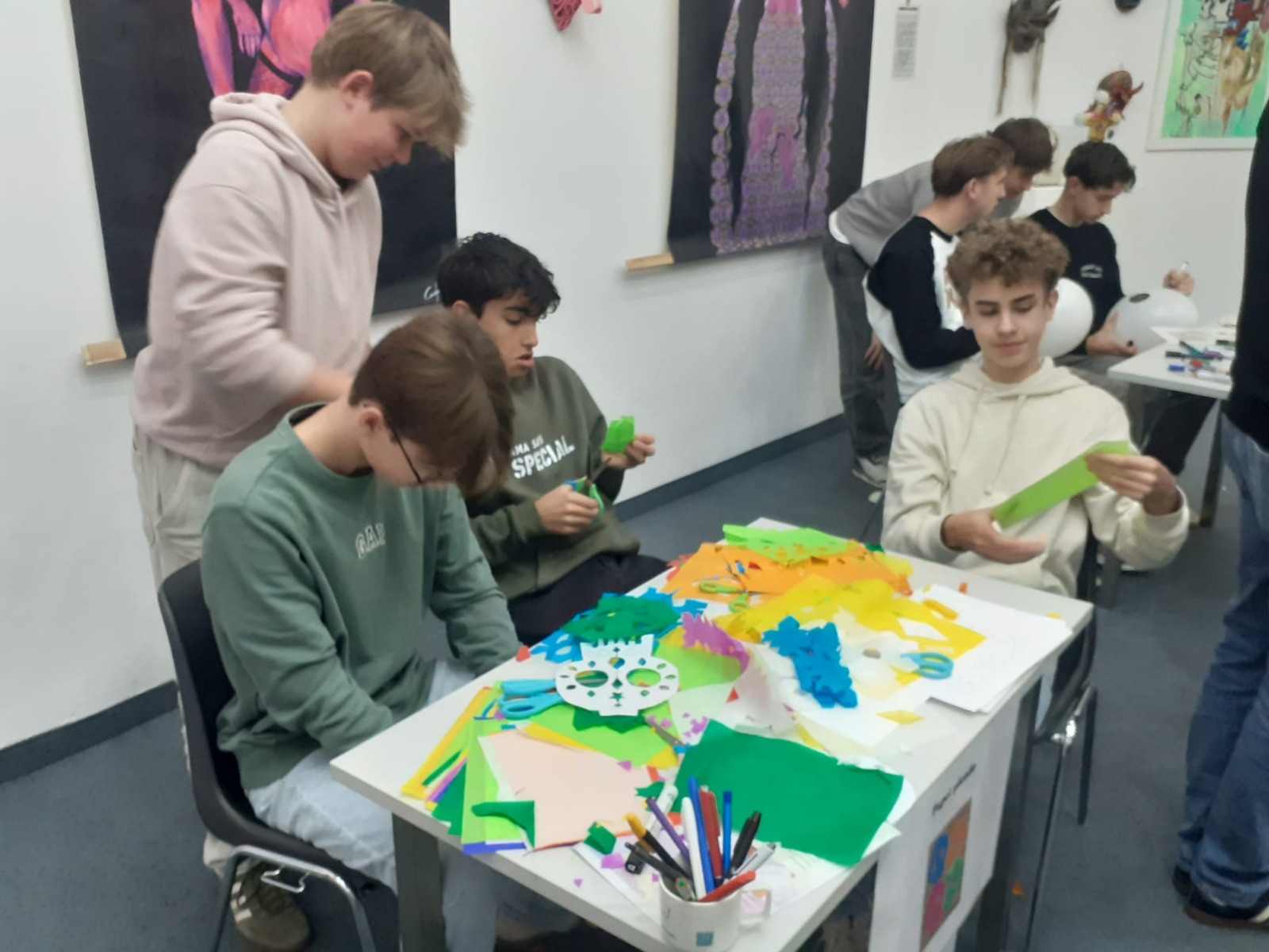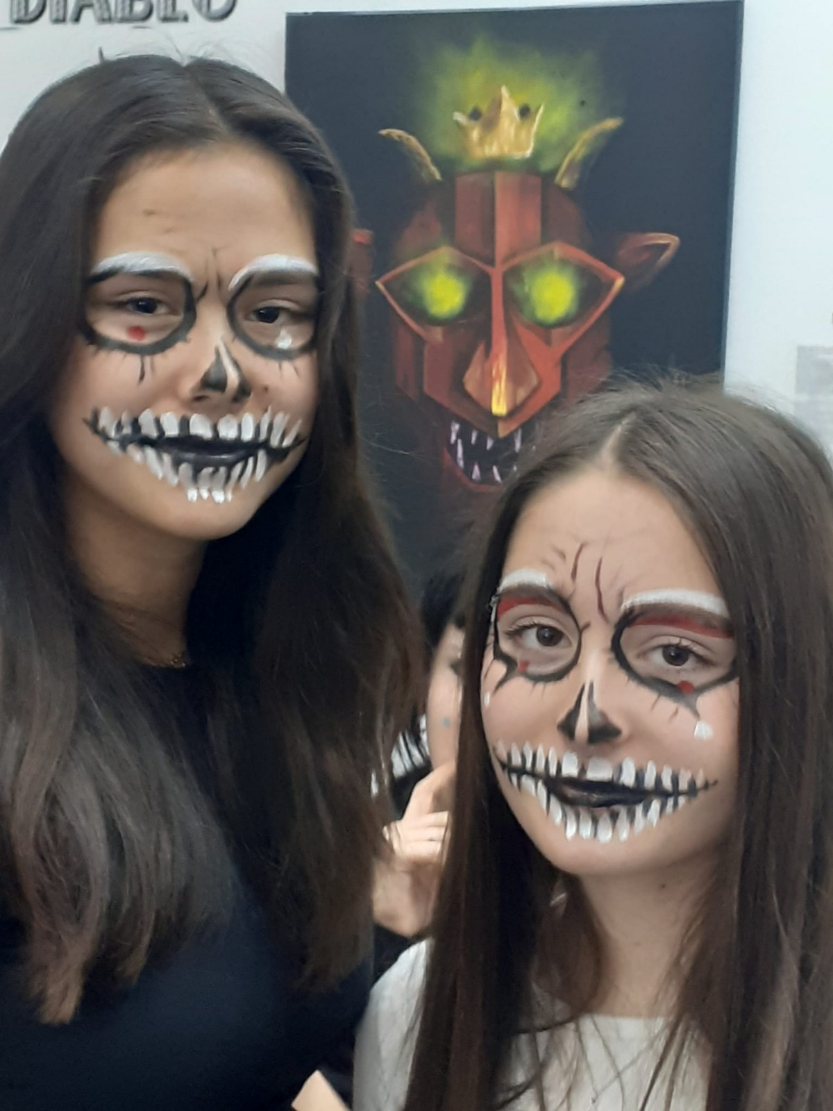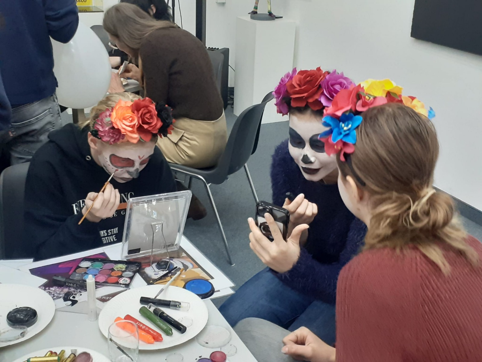 Die Spanischgruppe der 5AB verbrachte den 24. Oktober mit Mag. Verena Grafl und Mag. Martina Wintschnig im Lateinamerikainstitut. Neben reichlicher Information zum „Día de los muertos“, gab es viele Hands-on Mitmachstationen: Rätsel, Vokabelquiz, Totenköpfe aus Zucker verzieren, Bilder malen, Luftballone gestalten, Scherenschnitte und natürlich die beliebte Schminkstation. So geht Spanischunterricht! (GRAF)