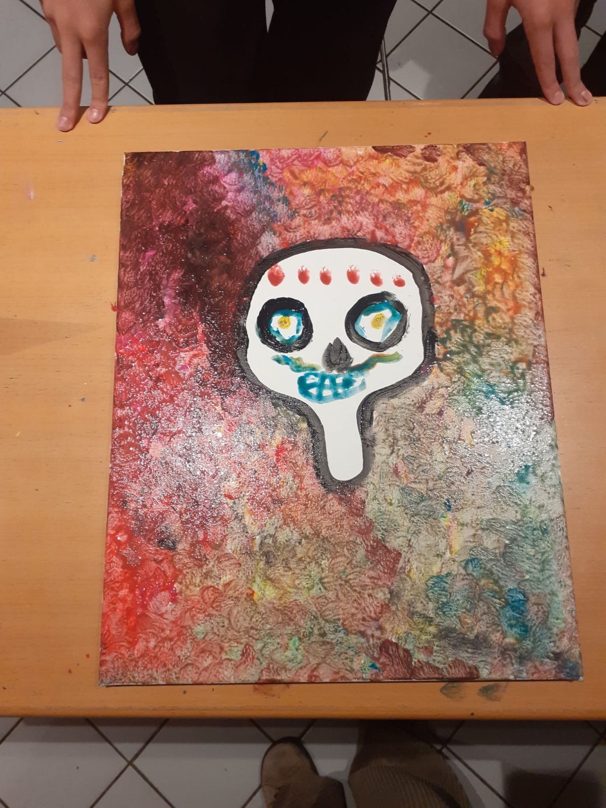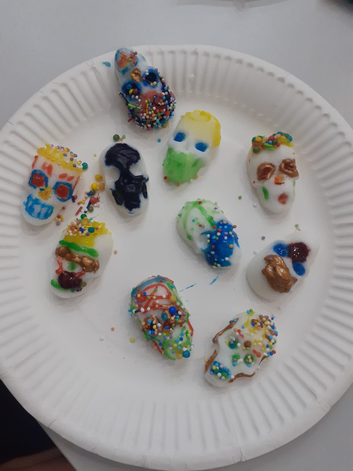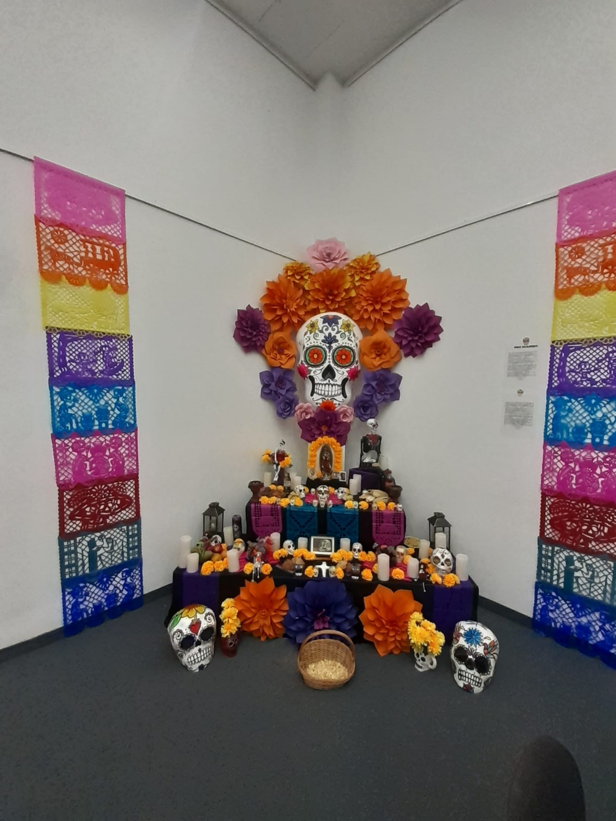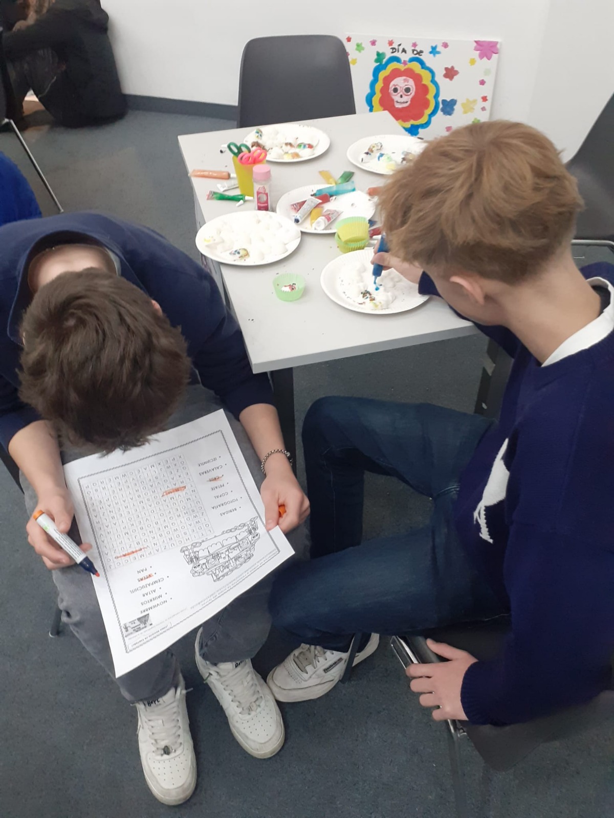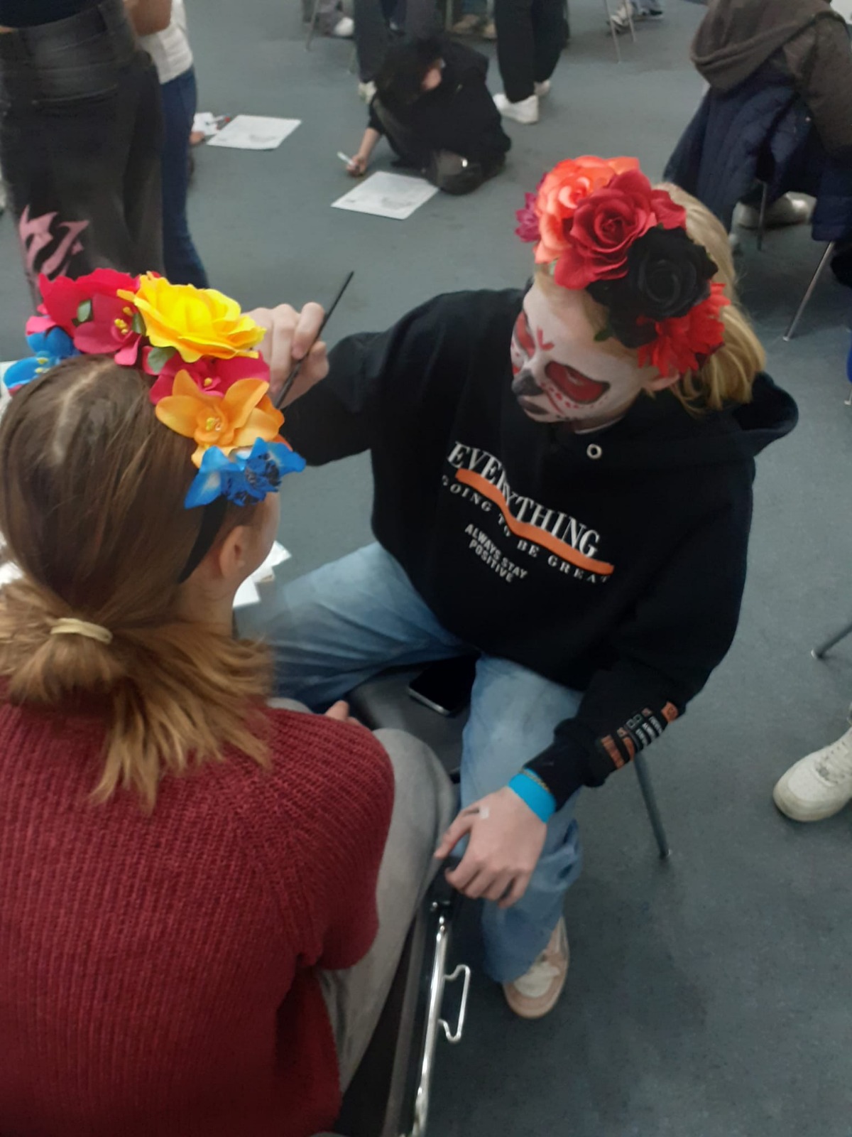 Am 21.10.2024 verbrachten die Spanischlernenden der 5A und 5B mit Mag. Brigitte Lemmel und Mag. Verena Grafl den Vormittag im Lateinamerikainstitut. Nach zahlreichen Informationen zum „Día de los muertos“ (Tag der Toten) in Mexiko gab es unterschiedliche Stationen zum Fest: Es wurden Bilder gemalt und Luftballons bemalt, Scherenschnitte gemacht, dekorative Blumen gebastelt, Totenköpfe aus Zucker verziert, wunderschöne „catrinas“ geschminkt und ein Altar verziert. Eindrücke, die bleiben! (V. Grafl)