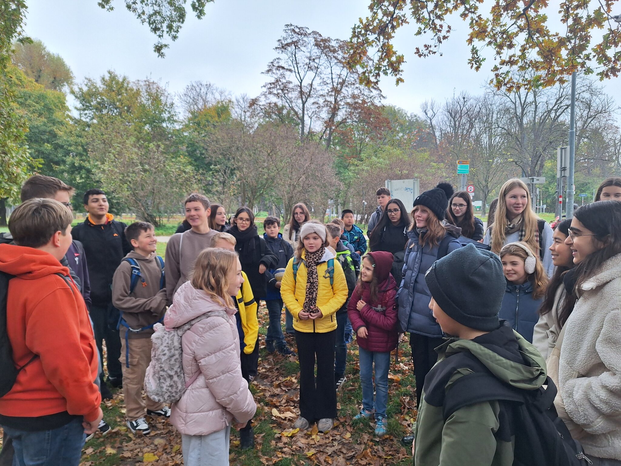 Am 10.10. hieß es für die Schüler:nnen der 1A und ihre Buddies aus der 5B: Exkursion! Mit Bus und Bahn ging es nach Groß Enzersdorf, um dort beim Auputztag in der Lobau mitzuhelfen. Die fleißigen Schüler:innen wurden mit Handschuhen und Müllsäcken ausgestattet und befreiten die Natur von jeder Menge Plastik, Papier, Dosen und Plastikflaschen. Ein rosaroter Einkaufswagen und eine Taucherflosse zählten zu den kurioseren Fundstücken, die im Lobauhaus fachgerecht entsorgt wurden. Wir wurden mit Tee und Weckerl für unsere Arbeit belohnt und die „Kleinen“ und „Großen“ genossen noch den Spielplatz und den gegenseitigen Austausch. Für ein wenig Land Art mit Frau Ritscher war auch noch Zeit und unser Lieblingsfundstück „Pflanzi“ hat schon neue Freunde bei den anderen Pflanzen in unserem Klassenzimmer gefunden 🙂 Ein herzliches Dankeschön nochmals an alle engagierten HelferInnen! (V. Grafl)