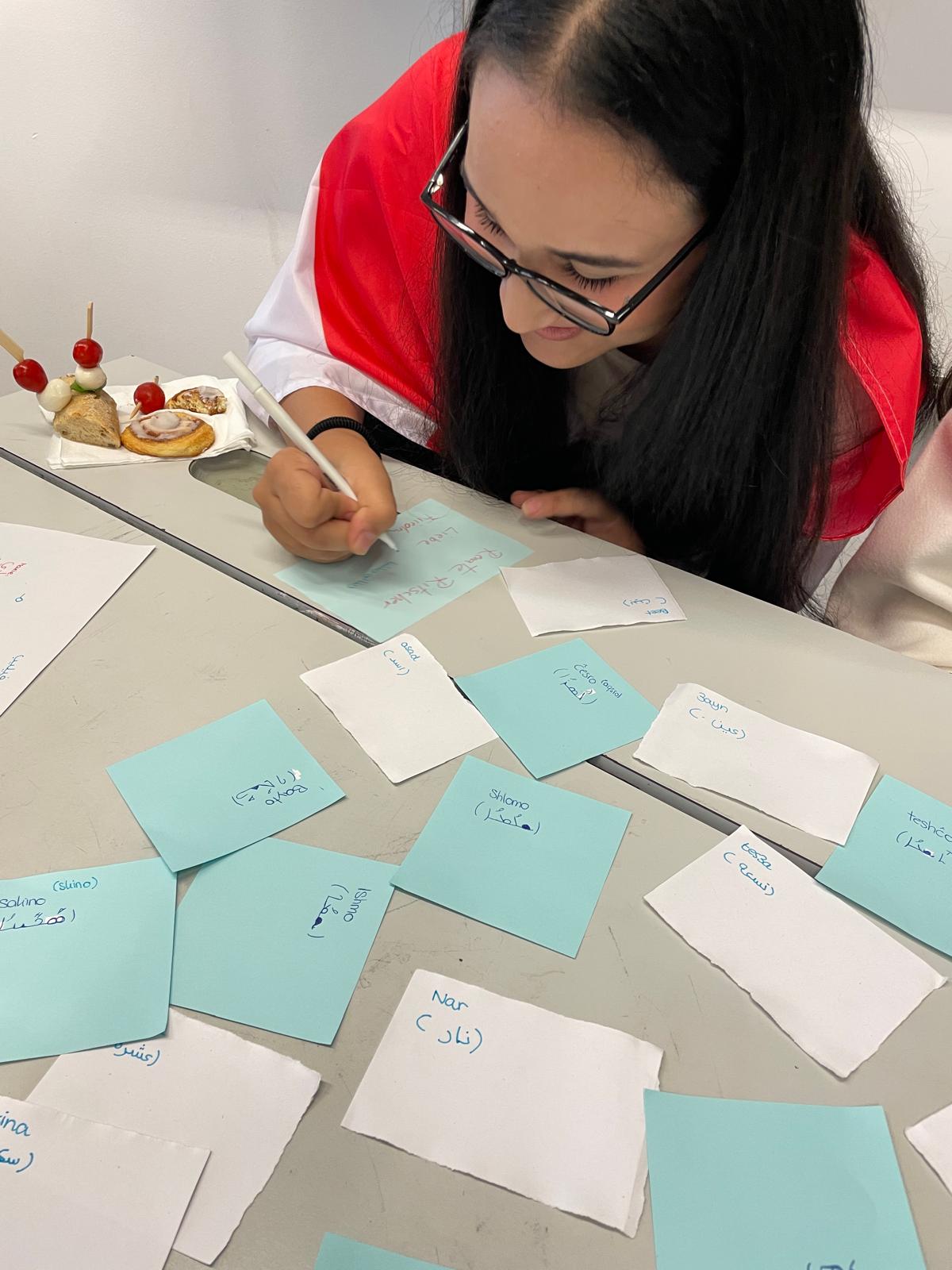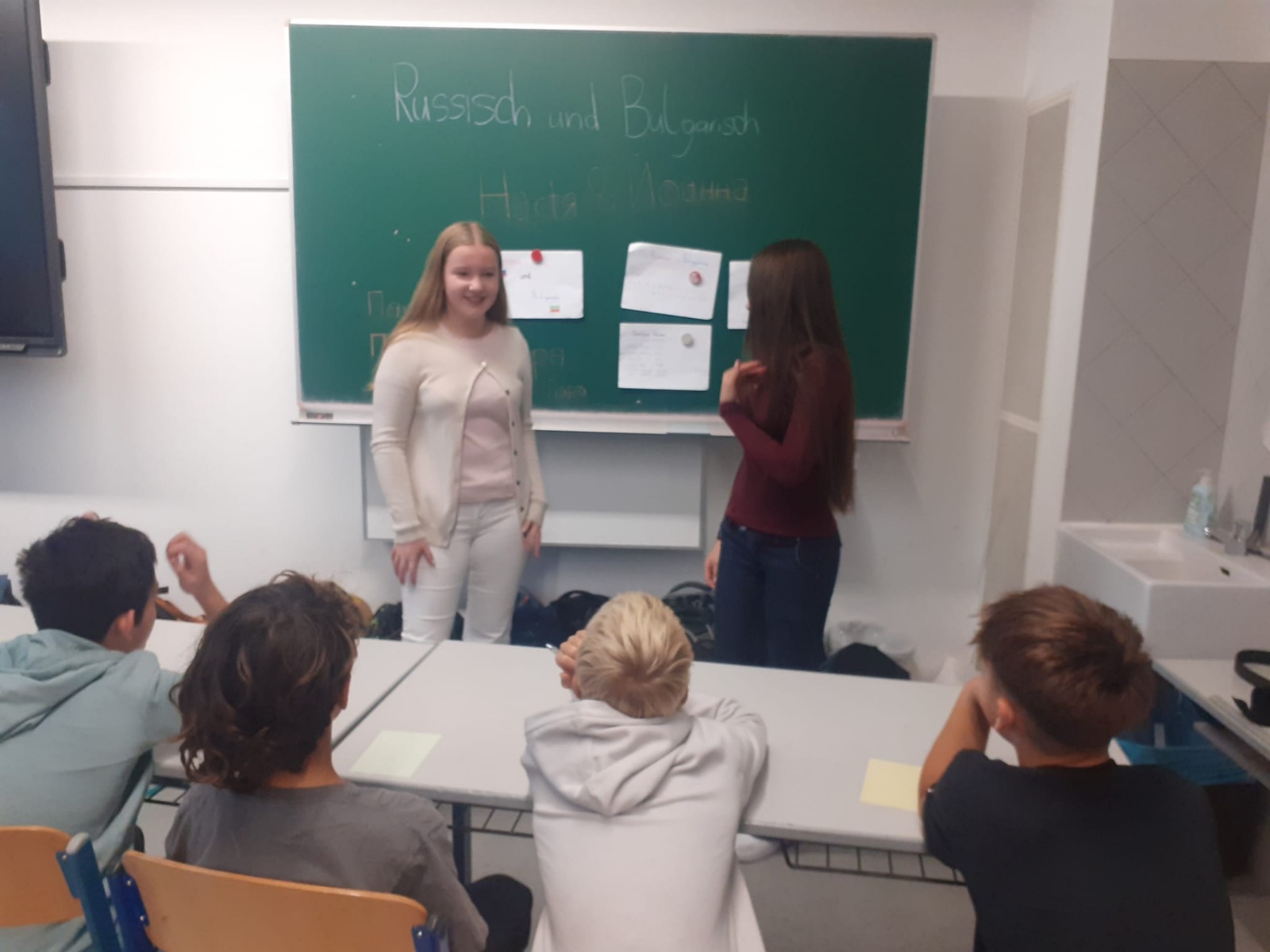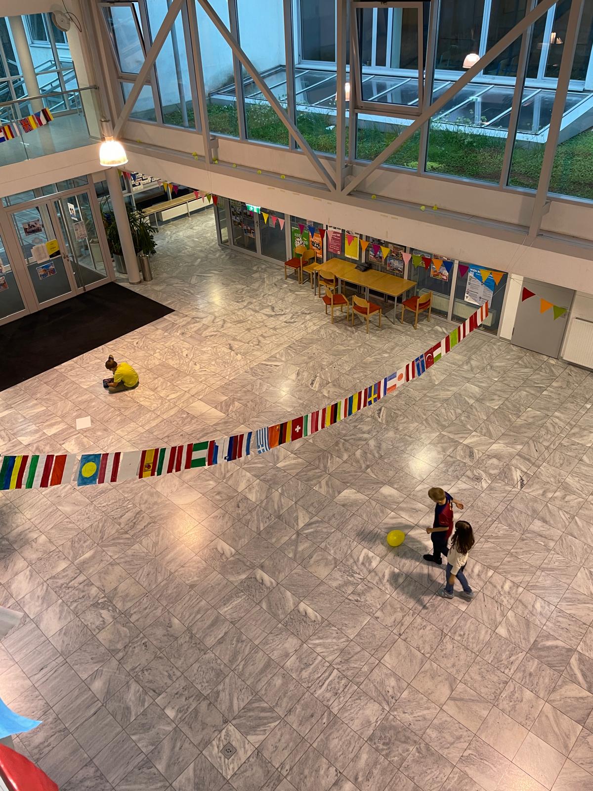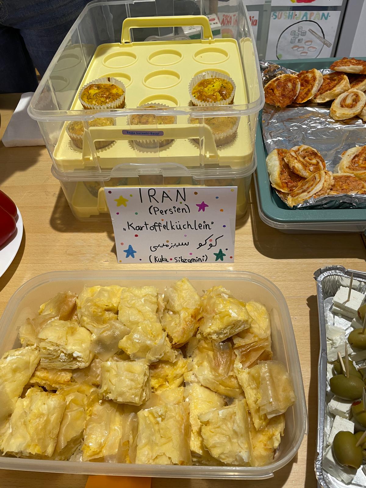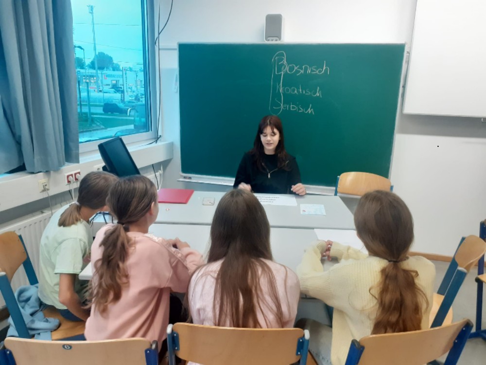 Neben einem internationalen Buffet für alle gab es am 26. September auch Stationenbetrieb für die 2. und 3. Klassen. Dabei erhielten die Schüler:innen zum Beispiel einen ersten Einblick in einige der Sprachen, die von Schüler:innen der 5C gesprochen werden: An verschiedenen Stationen wurden die Sprachen ausprobiert und geschrieben oder die kulinarischen Spezialitäten der jeweiligen Länder vorgestellt. Weiters wurde ein irischer Volkstanz getanzt und mit „Hupf in Gatsch“ in den Wiener Dialekt geschnuppert.