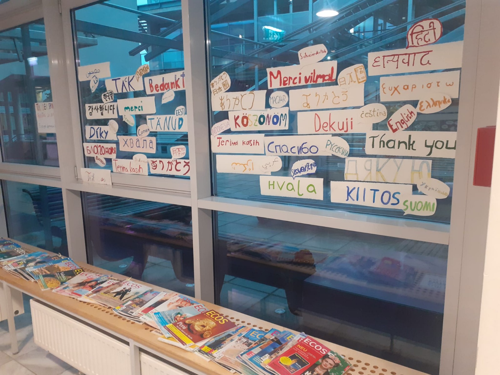 Am 26. September wurde der Europäische Tag der Sprachen auch am Evangelischen Gymnasium groß begangen! Die Aula war und ist noch immer bunt entlang des Mottos geschmückt.