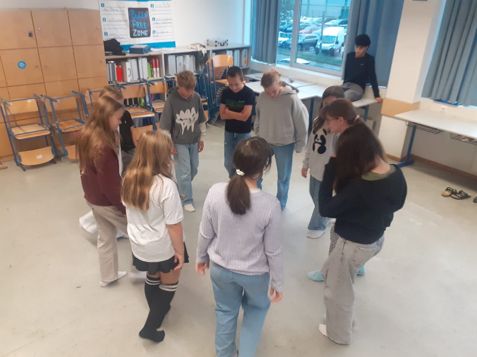 In der Woche vor Weihnachten fanden sich die Schüler:innen der 2b in Gruppen in der Aula zusammen, um englische Texte einmal anders zu schreiben.