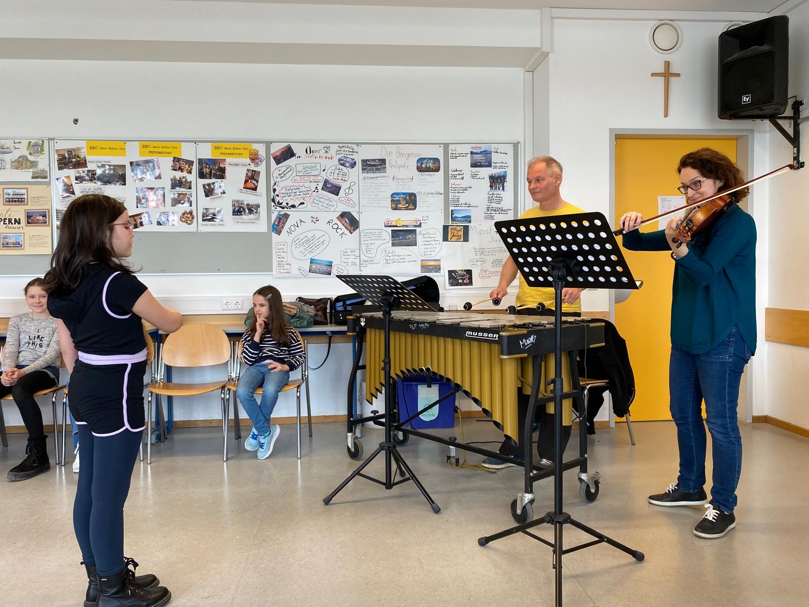 Am 29. 3. besuchten zwei Musiker der Wiener Symphoniker die 1D und 5C Klasse. Beide Klassen erhielten Informationen über ihre jeweiligen Instrumente (Bratsche und Trompete) und erfuhren auch einiges über das Berufsleben eines (Orchester)Musikers.