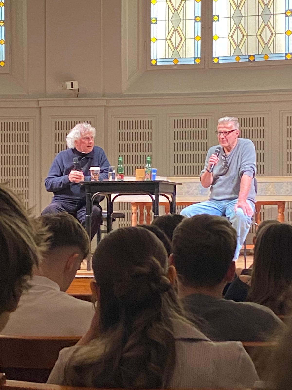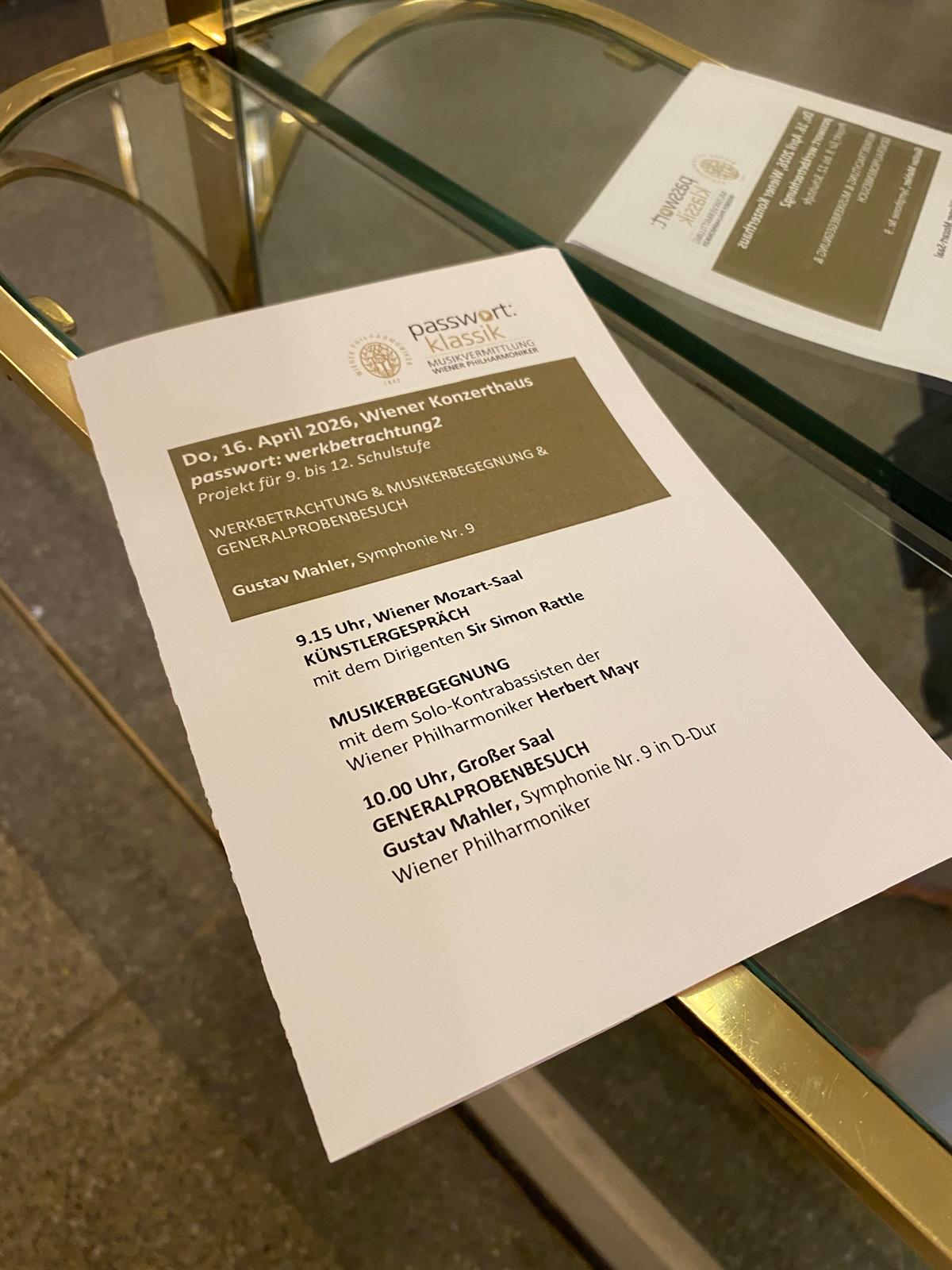 Dann kam Besuch von den Symphonikern in die 1D und am Ende der Woche besuchten die Musiker:innen der 6. Klassen Werkschulheim die Philharmoniker, dirigiert von Sir Simon Rattle. Wir hörten nach einem Künstlergespräch mit dem Dirigenten Mahlers 9. Symphonie – was für ein Werk!!! (DOEB)