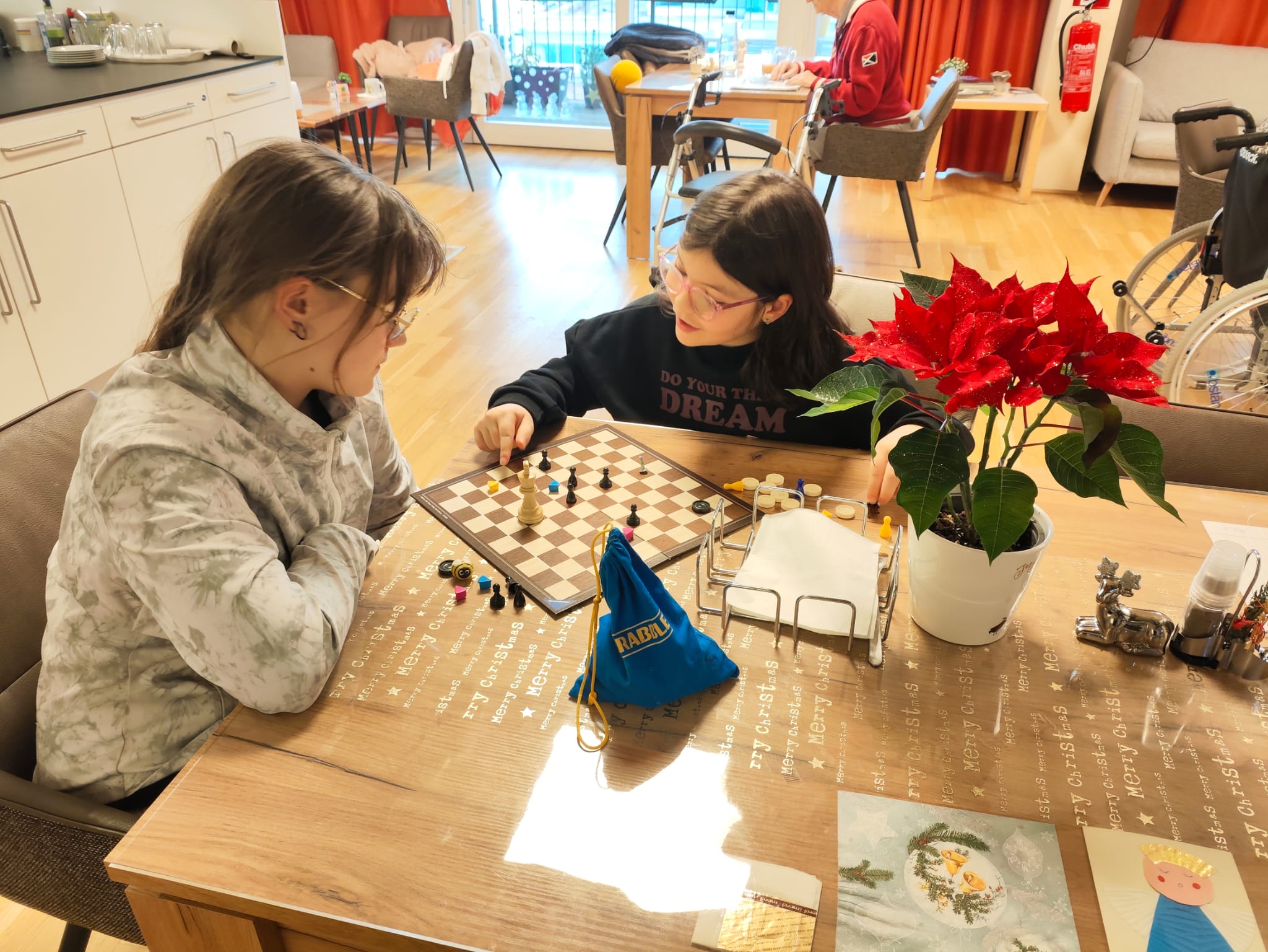 In den vergangenen Wochen waren die Schüler*innen mit großem Engagement in den Hausgemeinschaften unterwegs und haben den Bewohner*innen die Dienstagnachmittage mit Cafehaus, Brettspielen, Erzählungen, Zuhören und Bücher vorlesen lebendig gestaltet.