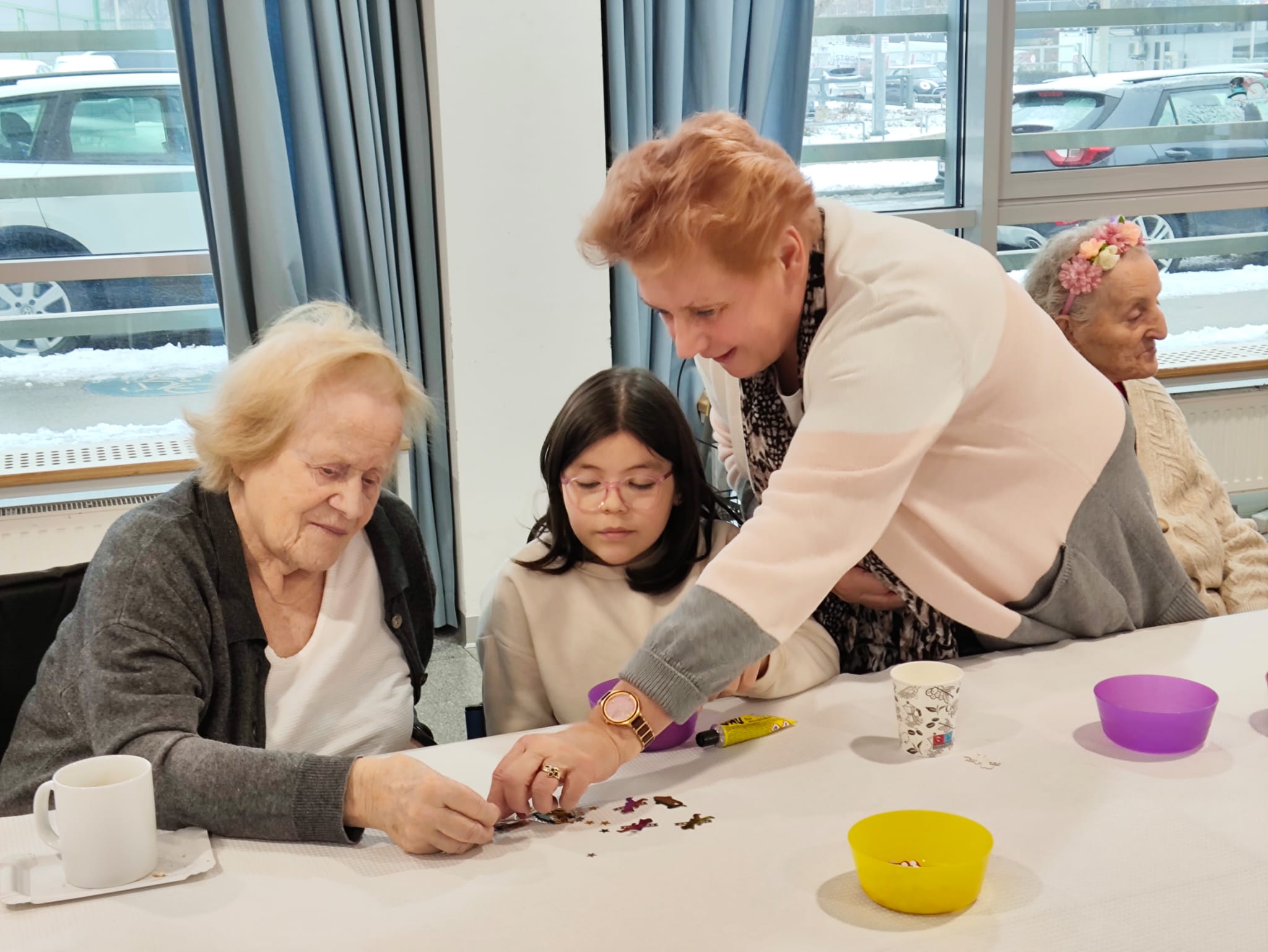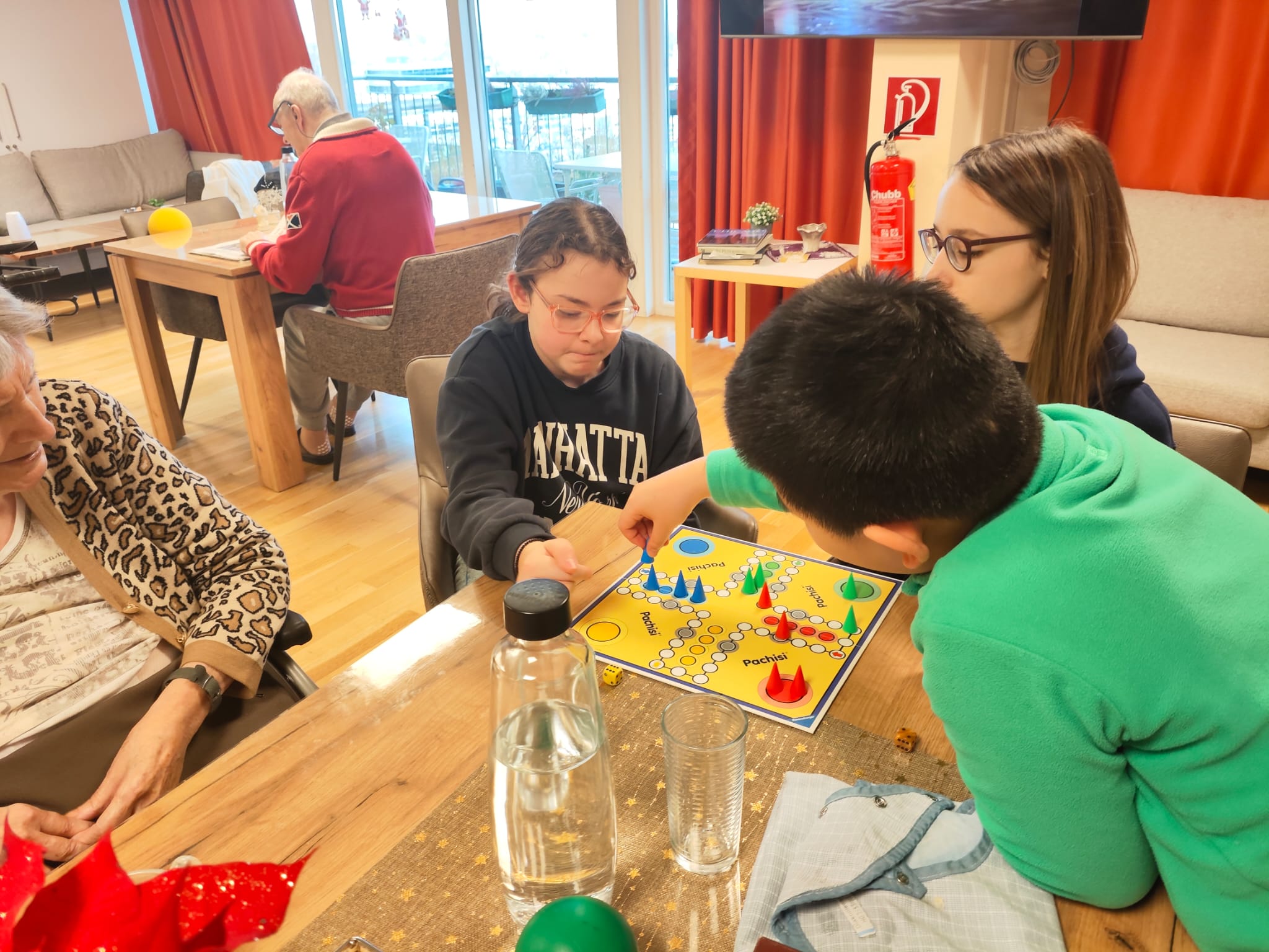 Vorfreude, gute Laune, gespannte Erwartungen „wie das so sein wird“, Aufregung. So sind wir Lehrende mit den Kindern gestartet und haben bereits an zwei Mittwochen die Bewohner:innen besucht. Gut gebrieft verflog die anfängliche Scheu sehr rasch und wie die Fotos zeigen, haben sich am Mittwoch bereits Spiele- und Bastelrunden gebildet, die auch das gegenseitige Kennenlernen leicht gemacht haben.