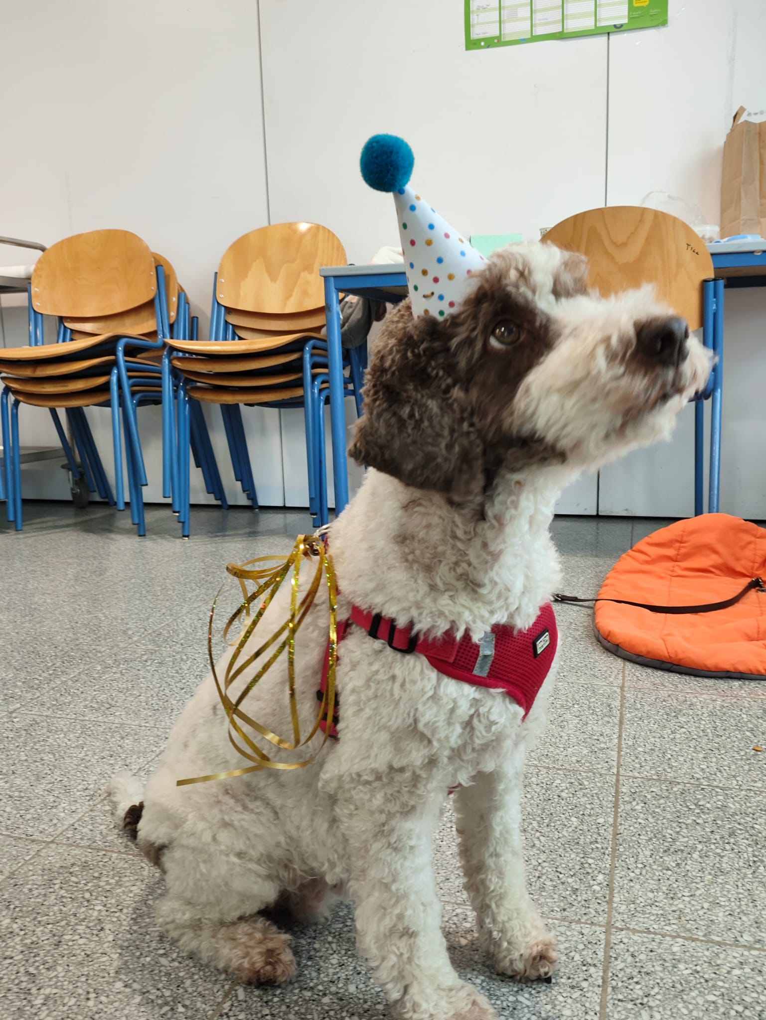Die TBH Bambi beobachtete das rege Treiben und konnte es fast nicht erwarten, ihre liebgewordenen Klient:innen in den HGs besuchen zu dürfen, wo es reichlich Streicheleinheiten und Leckerlis für sie gab.